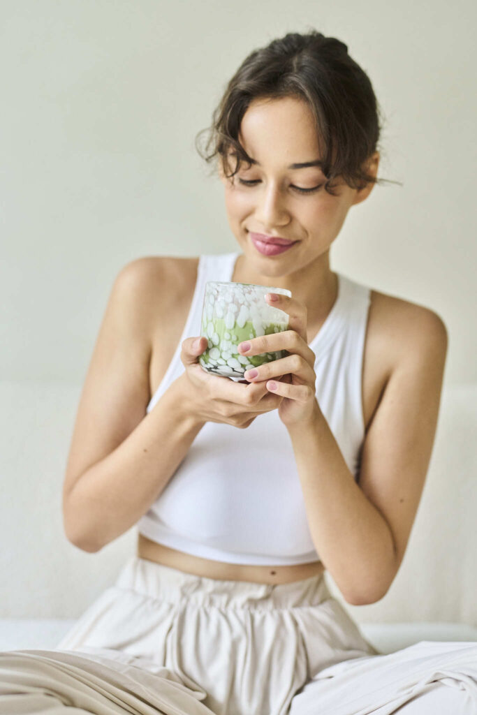 Coffee also does not leach magnesium. Matcha, on the other hand, is a rich source of catechins, which are extremely powerful antioxidants that help neutralize free radicals. Catechins also have an antiviral effect, supporting our immunity. Another important ingredient is chlorophyll, of which matcha tea leaves produce an especially high amount due to shade-growing. Chlorophyll helps cleanse the body of toxins. Other useful micronutrients in matcha tea include vitamin A, vitamin C, iron and potassium.