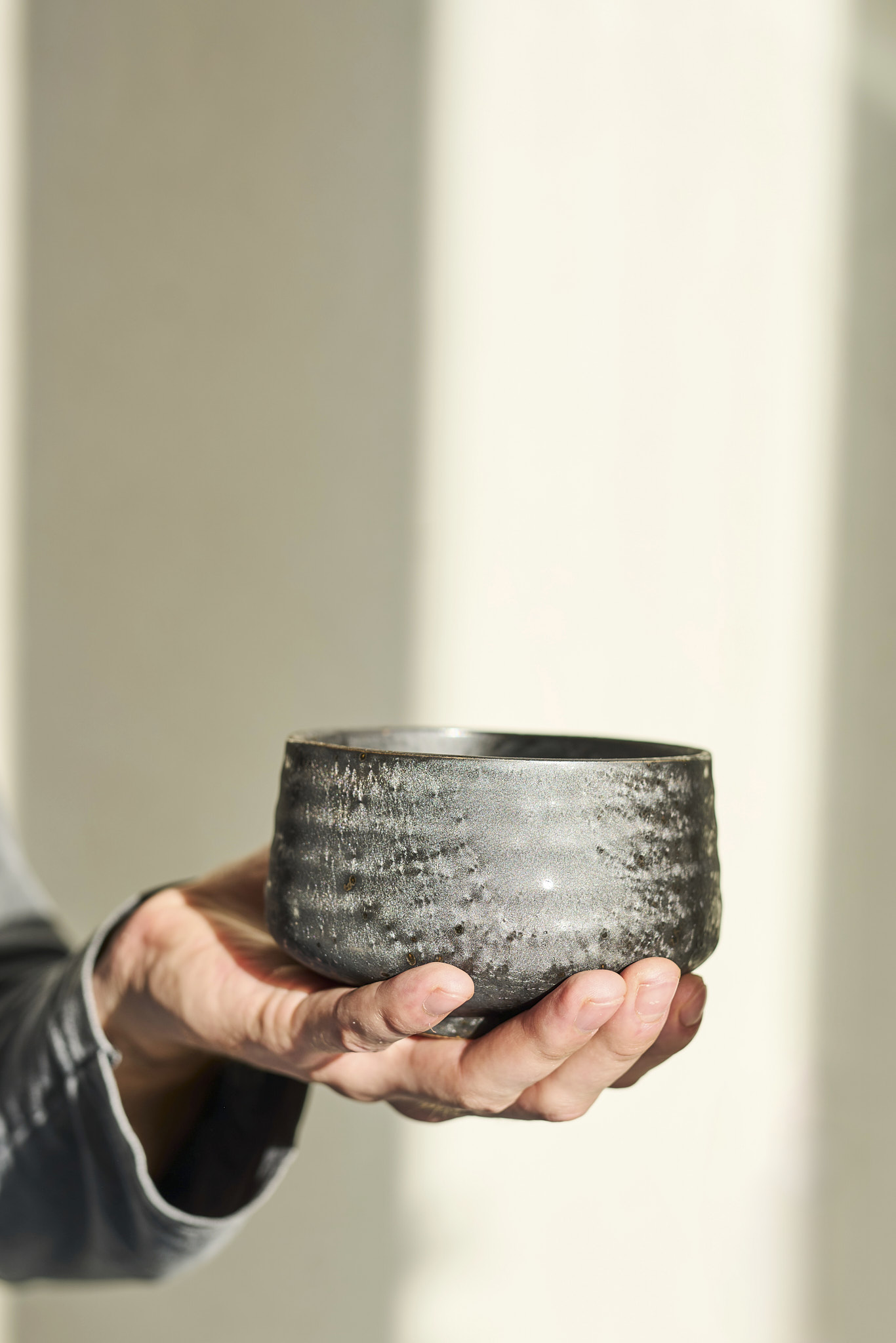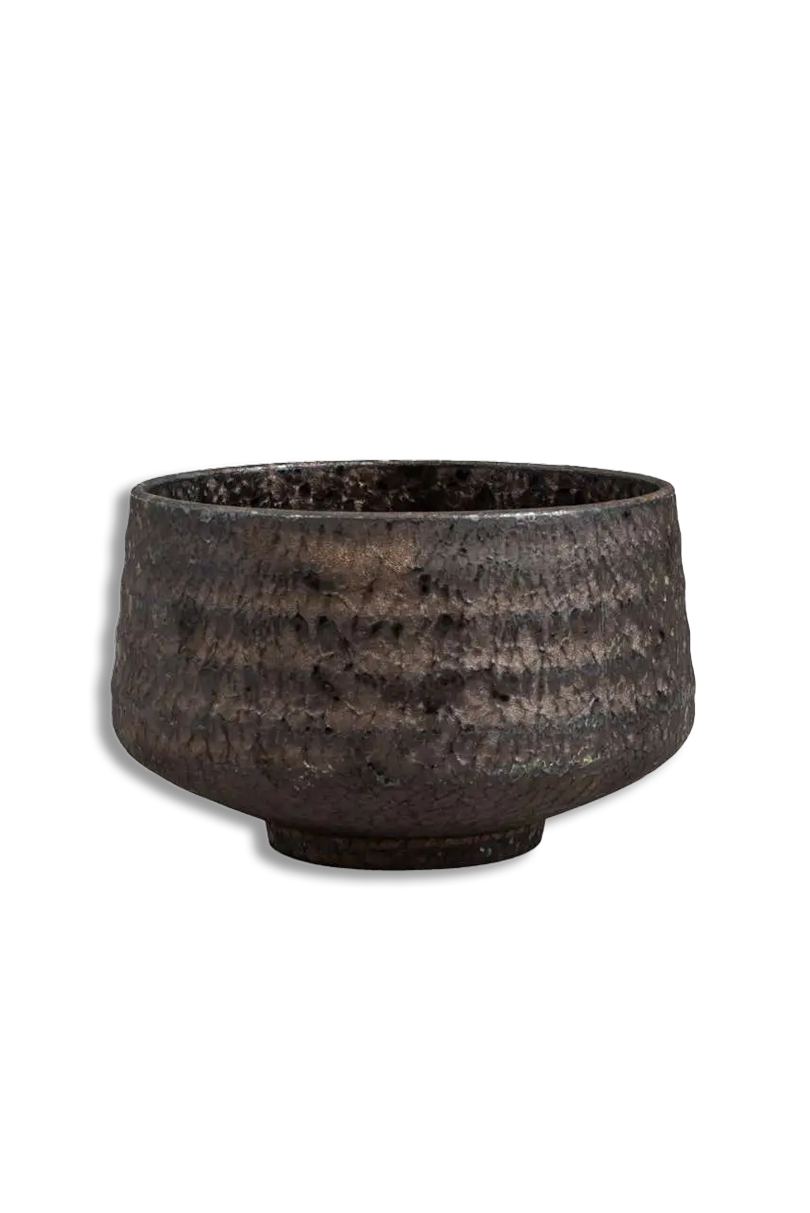 The Hagane tea bowl is a unique vessel for matcha, distinguished by its precise, handcrafted creation on a potter’s wheel. It originates from Gifu Prefecture, specifically the Oroshi district of Toki City, where artisans have been firing distinctive Shino ware for centuries. Its brown-gray tones lend the bowl an understated elegance while reflecting its heritage. The name “Hagane,” meaning “steel” in Japanese, captures the essence of its color and character. Each hand-thrown bowl is truly one of a kind, making every tea session a special moment. Not only does the Hagane bowl look stunning on display, but it is also exceptionally comfortable to use.