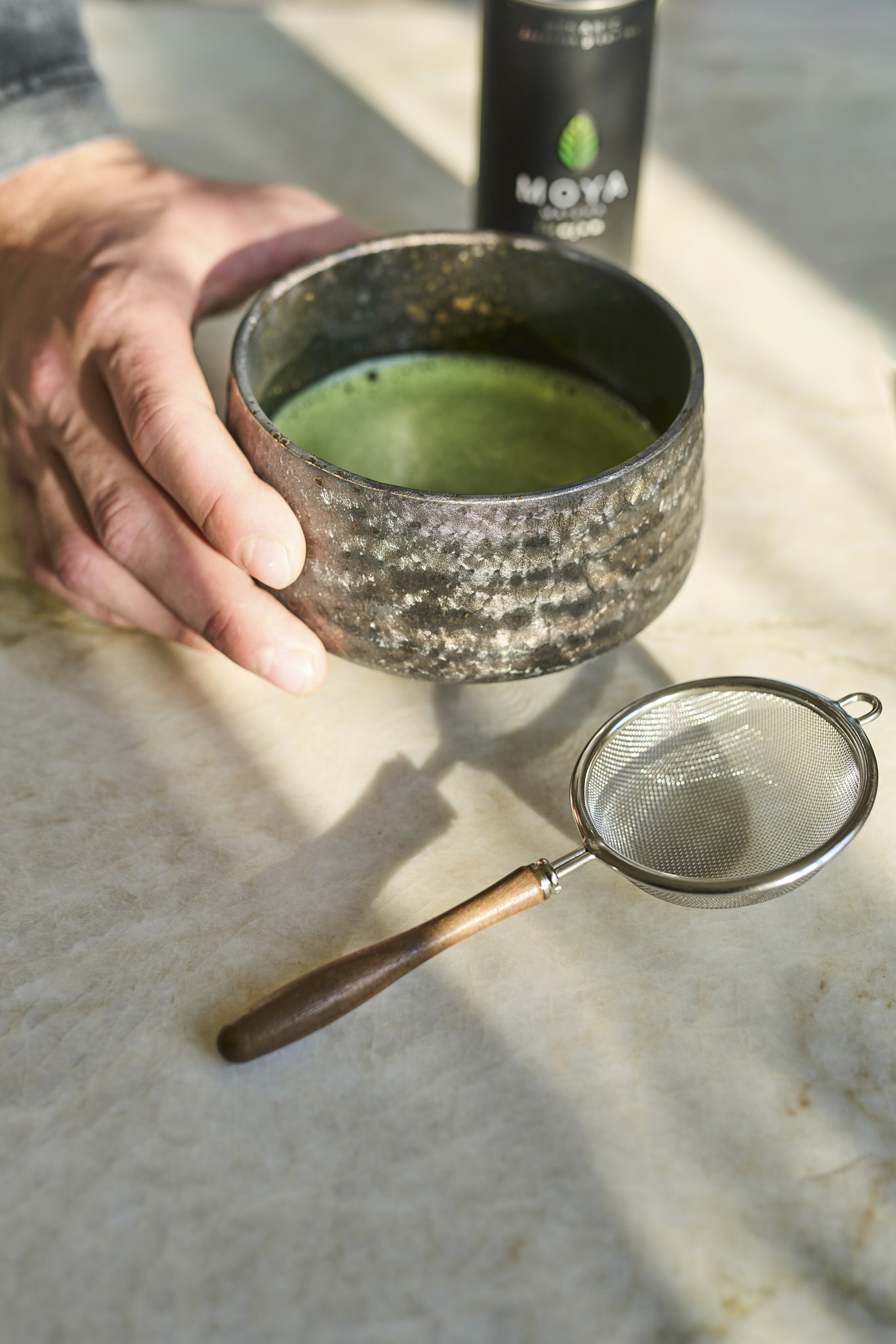 The traditional way to prepare matcha comes from the Japanese Tea Ceremony. It involves using a matcha bowl, a bamboo whisk- chasen and a bamboo spoon- chashaku.
