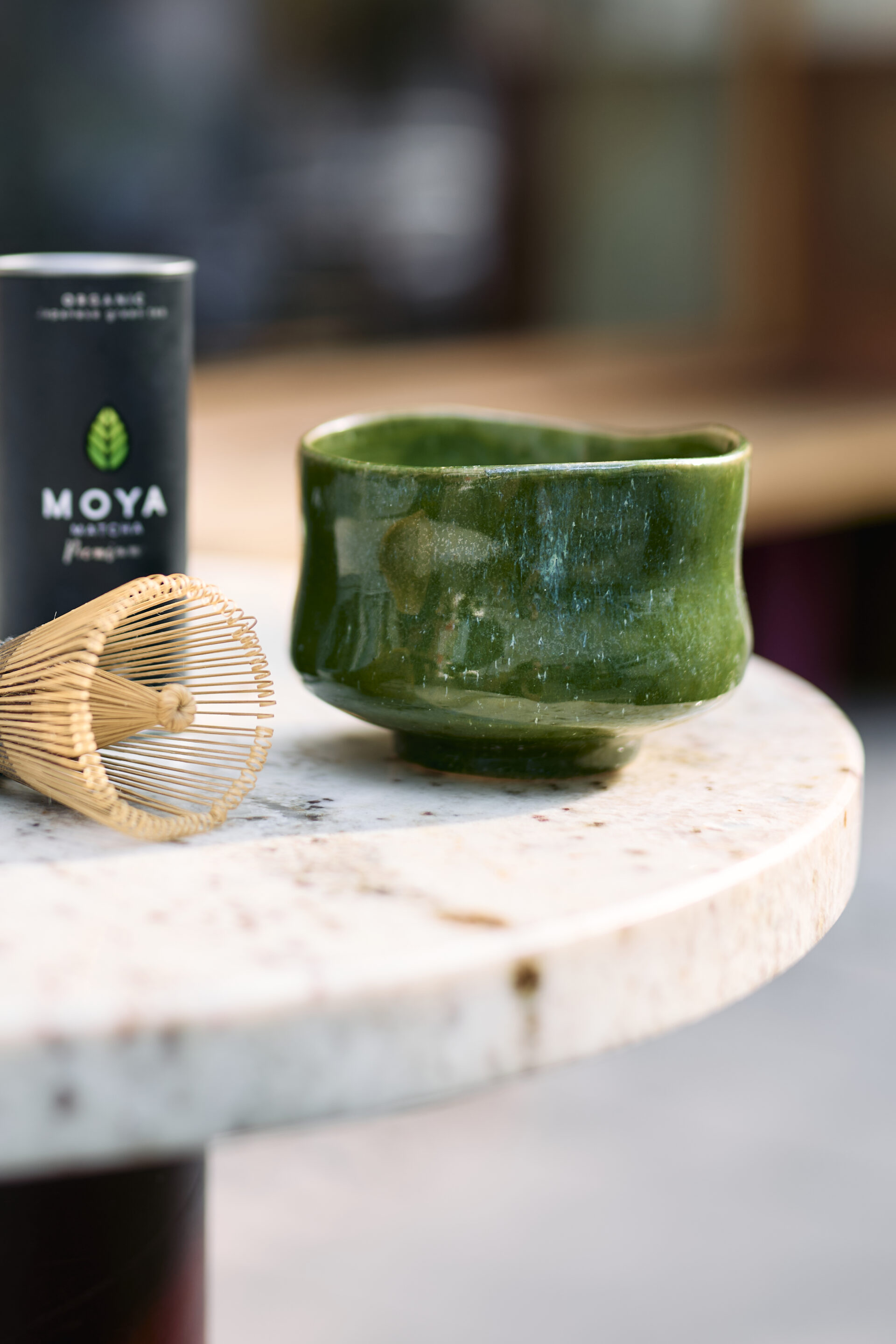 The traditional way to prepare matcha comes from the Japanese Tea Ceremony. It involves using a matcha bowl, a bamboo whisk- chasen and a bamboo spoon- chashaku.