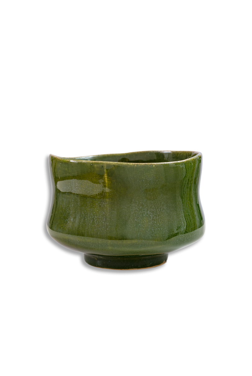 The Matchawan Kioto draws attention with its deep, vibrant green glaze that evokes the color of tea fields and the tranquility of Japanese gardens. Its subtly irregular shape gives it an organic character, perfectly suited to the meditative ritual of preparing matcha.