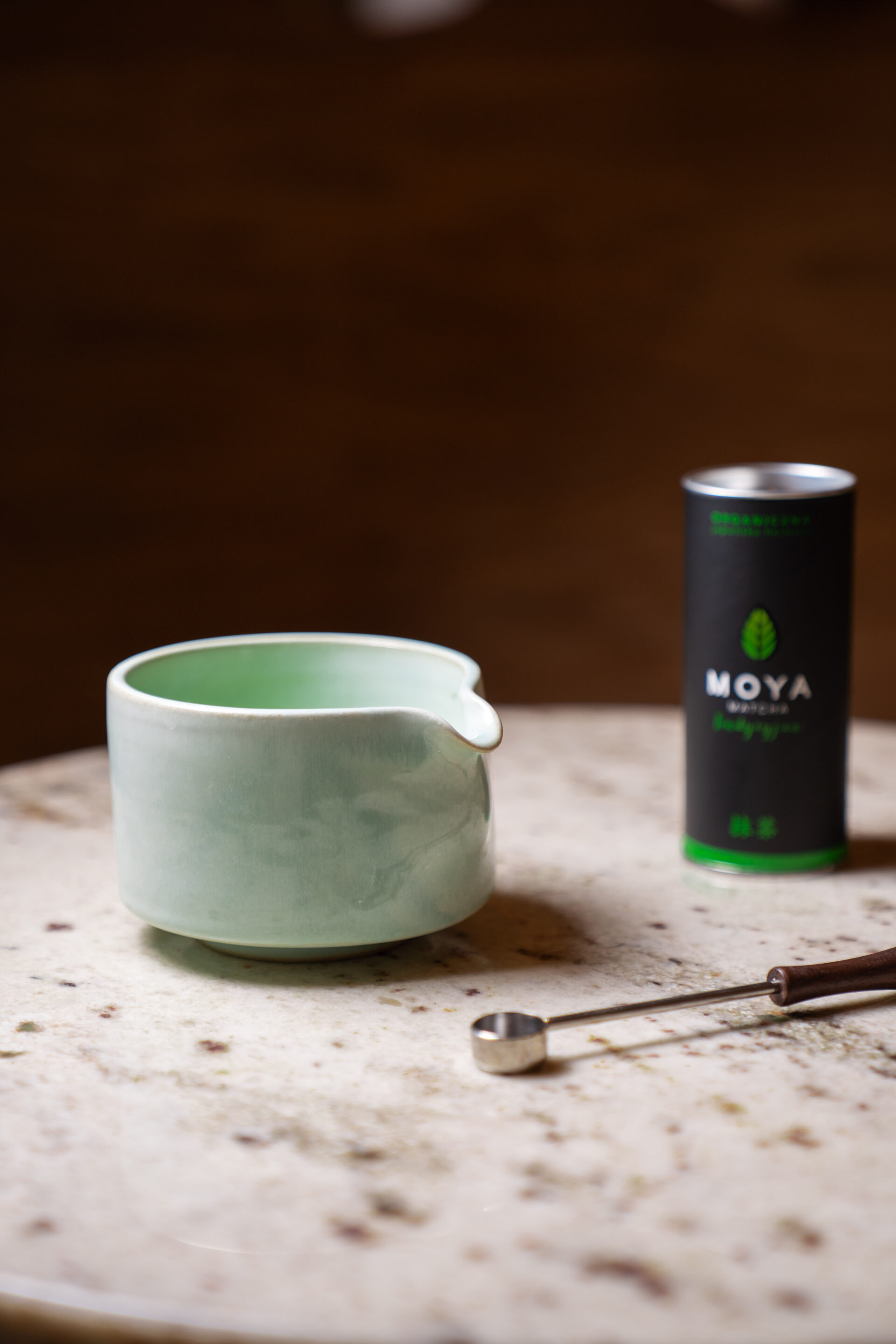 The traditional way to prepare matcha comes from the Japanese Tea Ceremony. It involves using a matcha bowl, a bamboo whisk- chasen and a bamboo spoon- chashaku.