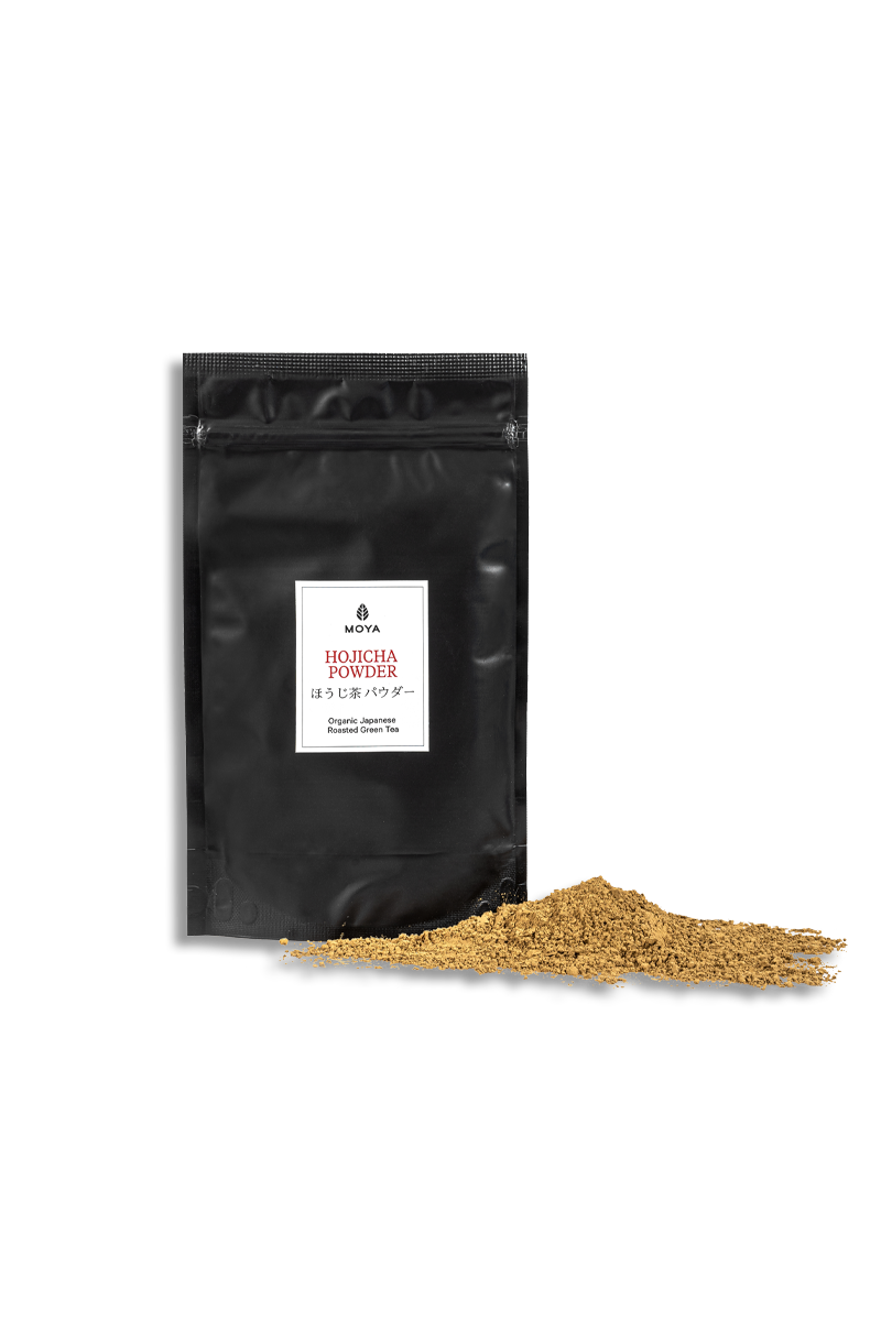 Powdered hojicha is a versatile culinary ingredient known to produce hojicha latte, the hazel sister of matcha latte, which can be served both hot and cold. To prepare hojicha latte mix a flat tablespoon of hojicha powder with 100ml of water by using a bamboo chasen or a milk frother and then add a milk of your choice. Hojicha latte is best prepared in a traditional ceramic matchawan used for preparing matcha and tastes great with plant-based milks. The nutty flavor of roasted hojicha powder makes for a great additive to a number of recipes starting with hojicha ice cream, macarons and cakes. Its taste is deprived of bitterness making it a popular choice among kids. Moya Hojicha Powder is produced in Kagoshima Prefecture in Japan.
