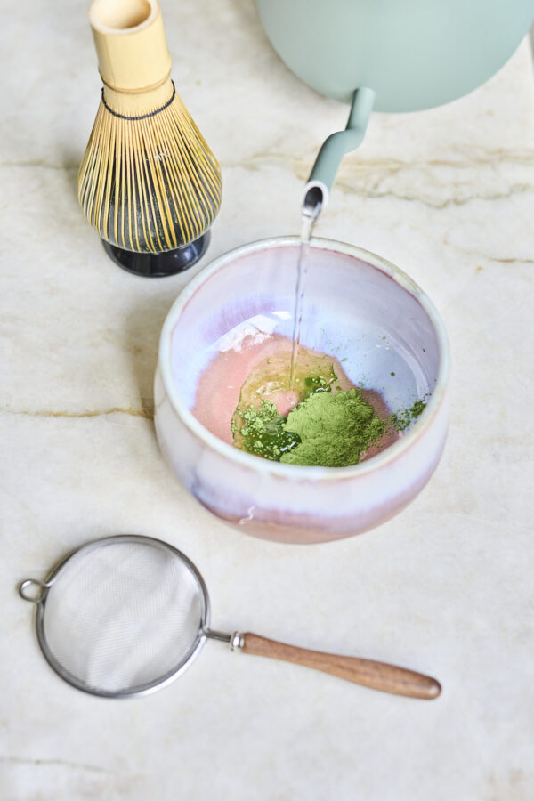 Traditional bamboo whisk or “chasen” is an indispensable tool of the Japanese matcha tea ceremony. The fine, handmade prongs are carved out in a single piece of bamboo. When using a chasen to whisk matcha it is best to keep a loose and relaxed wrist and make rapid zigzag motions in the shape of letter “W” or “M” – this helps to give matcha the ideal frothy texture.