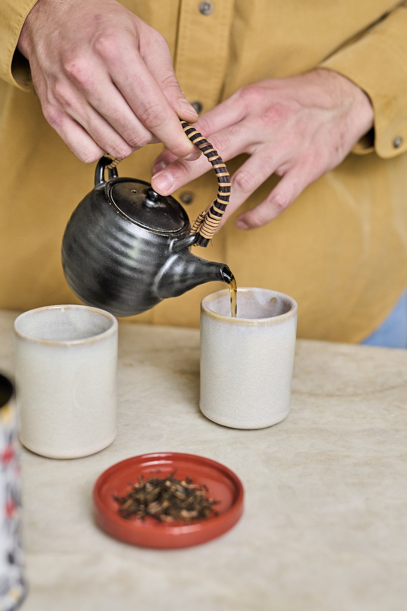 Czajnik Nobu służy do zaparzania herbat liściastych i został wytworzony w zgodzie w japońską tradycją herbacianą.Dzięki wygodnej rączce oraz metalowemu sitku w środku, można cieszyć się naparem bez fusów ze swojego ulubionego kubka. Naczynie odznacza się ciemnym i lekko metalicznym szkliwieniem, które uzupełnia brązowa, plecioną rączka. Czajnik został wyprodukowany w Japonii na wyspie w Honsiu w mieście Toki, słynącym z wytwarzania ceramiki Mino. Na początkowym etapie naczynie ukształtowano za pomocą formy, by później finalny kształt i wzory wykonać ręcznie. Właśnie dzięki tej technice, każdy czajnik do herbaty Nobu jest unikalny. Można myć w zmywarce.