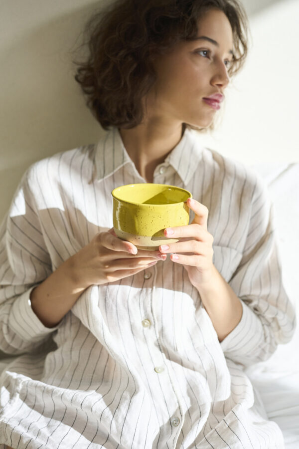 Wykonane ręcznie na kole garncarskim może zatem delikatnie odbiegać od tego na zdjęciu.