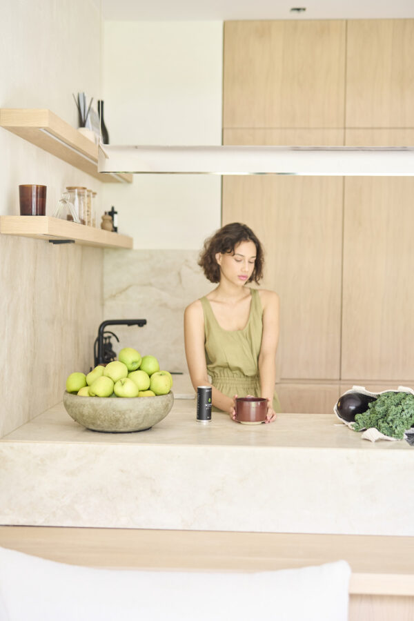 Matchawan został wykonany ręcznie na kole garncarskim z szarej gliny z delikatnym dodatkiem szamotu i szkliwa z glazury wykonanego zgodnie z wielowiekową japońską tradycją. Matchawan jest tradycyjnym narzędziem wykorzystywanym w japońskiej ceremonii herbacianej. Jest to również zdecydowanie najwygodniejsze naczynie do picia matchy, którą najlepiej utrzepywać bambusową miotełką (tzw. chasenem). Pionowe ścianki czarki i szerokie dno pozwalają łatwo i wygodnie „utrzepać” matchę w wodzie i szybko uzyskać warstwę pianki powierzchni. Należy pamiętać, że temperatura wody, w której przygotowywane jest matcha nie powinna przekraczać 80 C. Matchawan powstał w specjalnie limitowanej serii KOOE dla MOYA wykonanej przez krakowskie studio ceramiki KOOE, którego wyroby charakteryzują się nie tylko pięknymi formami ale też wyjątkową wytrzymałością ze względu na wypał w wysokiej temperaturze.