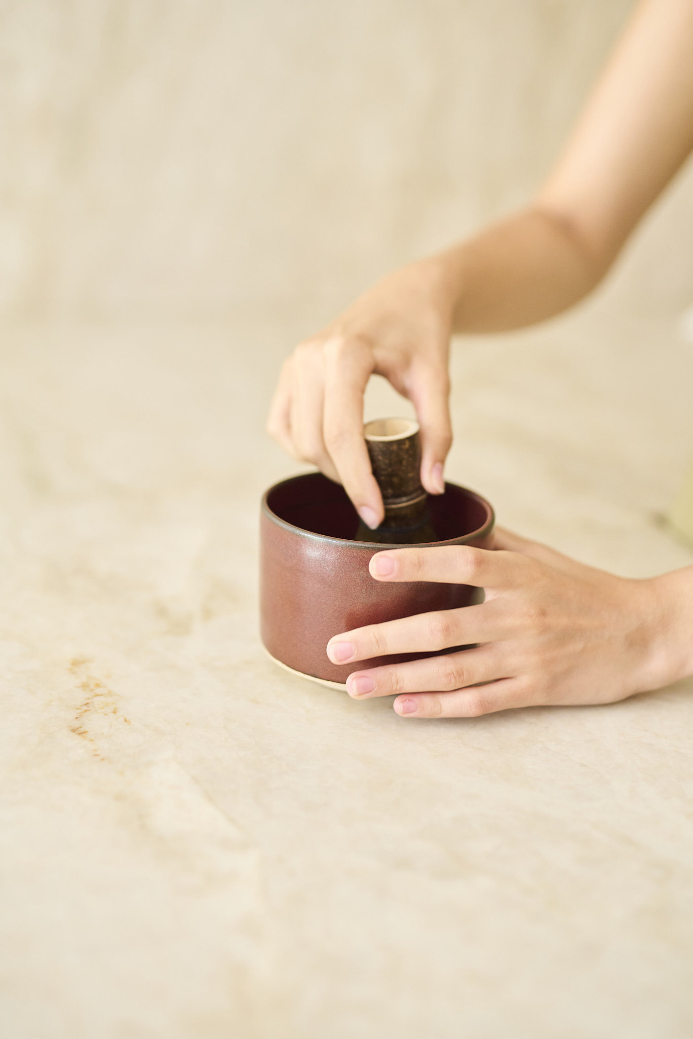 Podstawka pod chasen to nie tylko piękny element tradycyjnego japońskiego zestawu matchy do ceremonii herbacianej. To praktyczne narzędzie, które pomaga utrzymać delikatne wąsy chasenu w idealnym kształcie zapewniając mu długowieczność. Podstawka wykonana jest z czarnej, lśniącej porcelany.