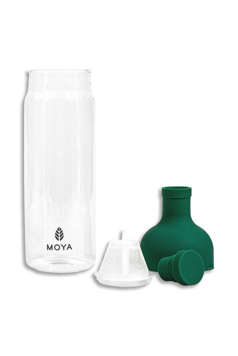 Przygotowanie naparu jest wyjątkowo proste – wystarczy wsypać dowolną herbatę liściastą, zalać zimną wodą i odstawić do lodówki na noc (7–12 godzin). Napój uzyskany w ten sposób jest łagodny, smaczny i wolny od goryczy. Dzięki filtrowi wbudowanemu w górną część, liście herbaty pozostają w środku, a Ty możesz od razu delektować się klarownym naparem. Szklana butelka do cold brew doskonale sprawdza się także do przygotowywania wody z owocami. Można ją myć w zmywarce, a czyszczenie jest szybkie i bezproblemowe.
