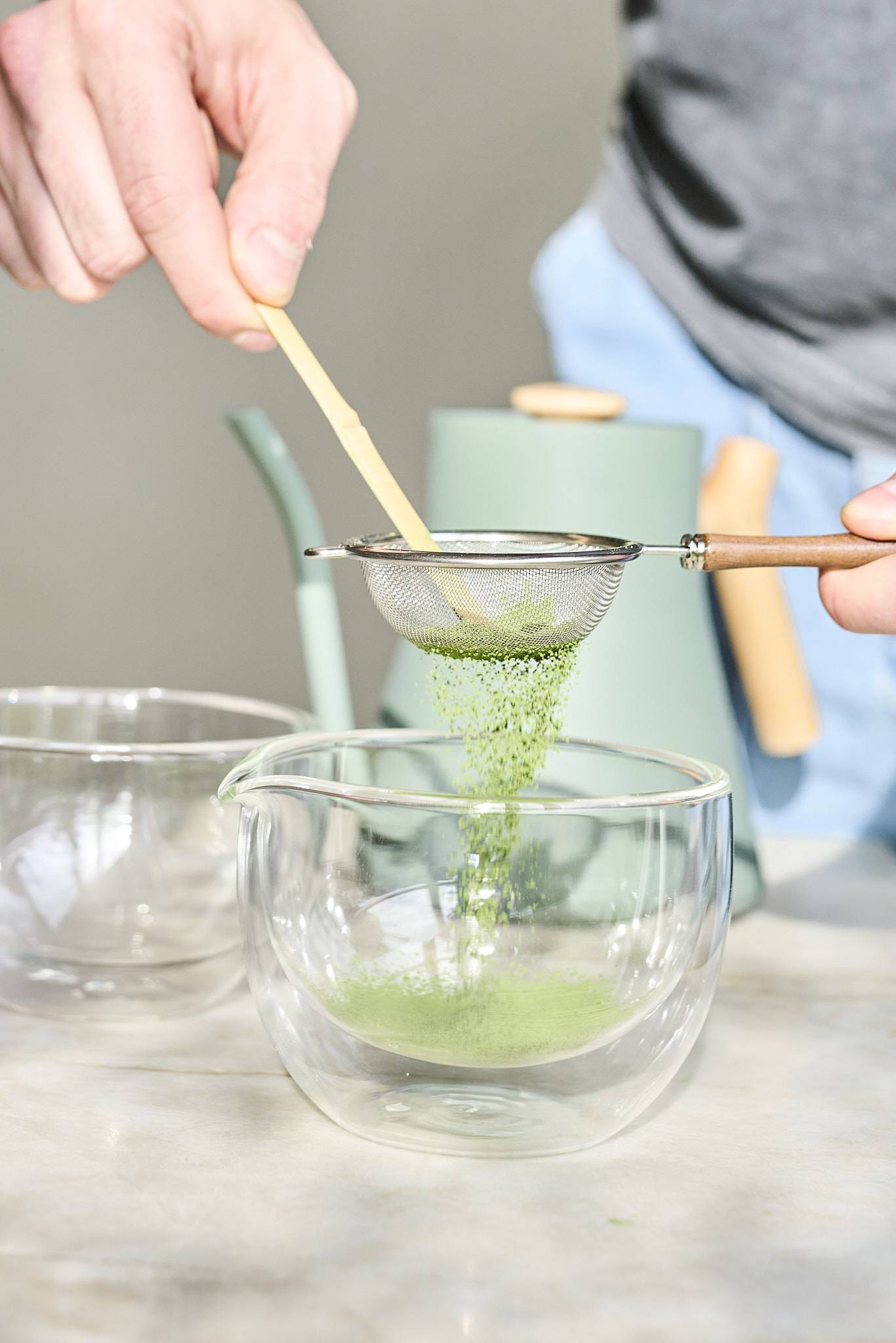 Czarka została wykonana ręcznie ze szkła boro krzemowego. Jej pionowe ścianki i szerokie dno pomagają w przyrządzeniu matchy w wodzie i szybko uzyskać na powierzchni gęstą zieloną piankę.